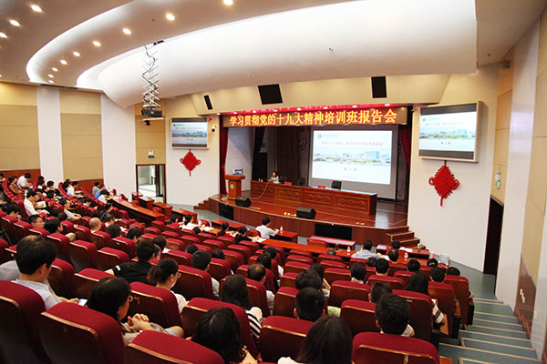 6月5日下午,我校学习贯彻党的十九大精神培训班在图书馆第一学术报告厅召开专题辅导报告会,校长曹云霞为培训班学员作题为“贯彻党的十九大精神,谱写学校改革发展新篇章”的辅导报告。校党委副书记刘群英主持报告会。