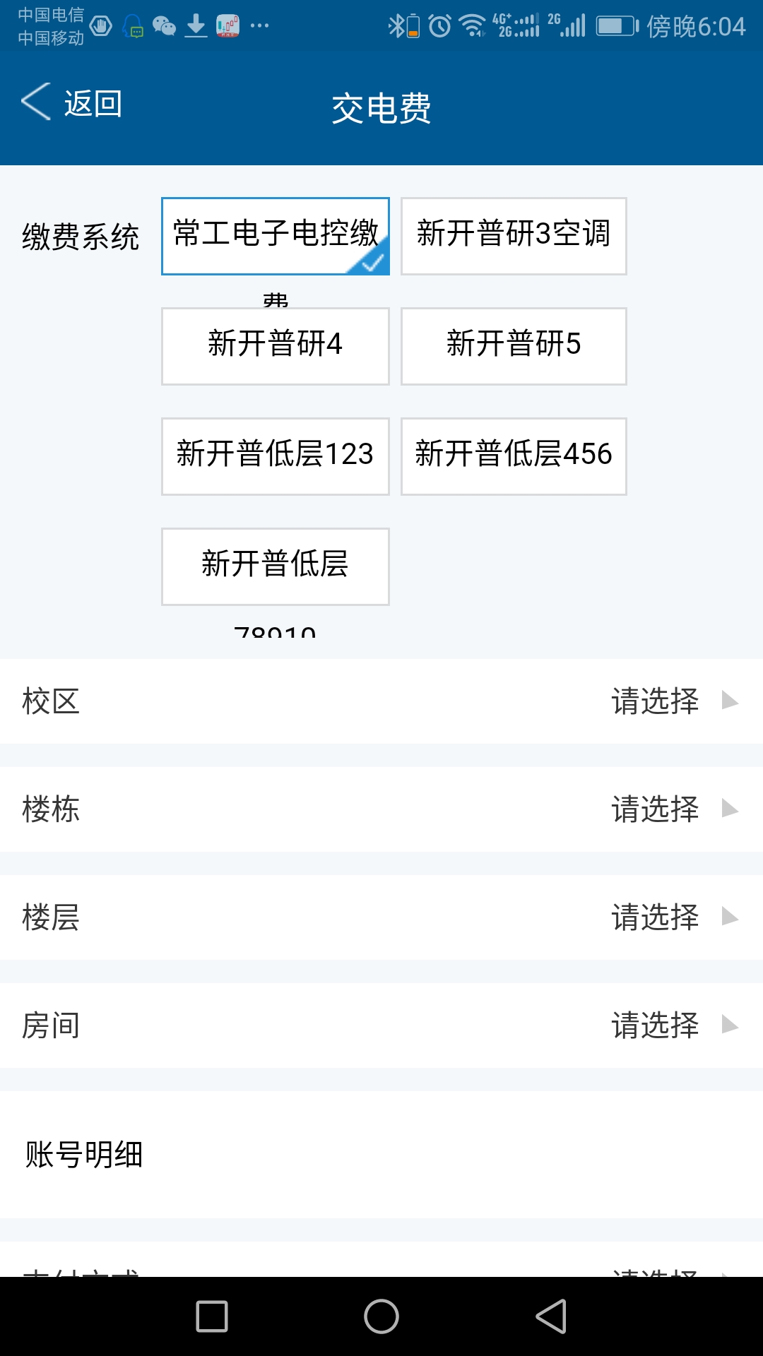 3)缴费服务:电费、网费、辅修费、等级考试费、党团费、培训费、学费。具体操作步骤如下: