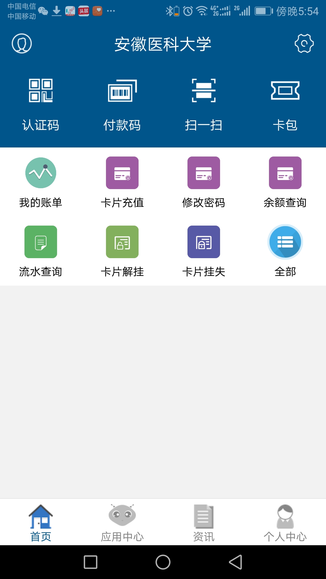 1校园卡服务:新办卡申请、卡延期申请、校园卡充值、校园卡密码修改、校园卡余额查询、校园卡挂失、校园卡解挂、拾卡招领、交易流水查询、校园卡销户申请;