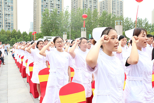 典礼由该院党委书记王海林主持。开诊典礼上,在该院心血管内科主任唐宝龙的领誓下,百余名医护人员身着白色工作服庄严宣誓。安医大一附院、安医大二附院、安医大附属口腔医院、安医大附属巢湖医院、安医大附属阜阳医院、省立儿童医院、宣城市人民医院及深圳明喆物业公司等单位发来贺信,对该院新院区的开诊表示祝贺!
