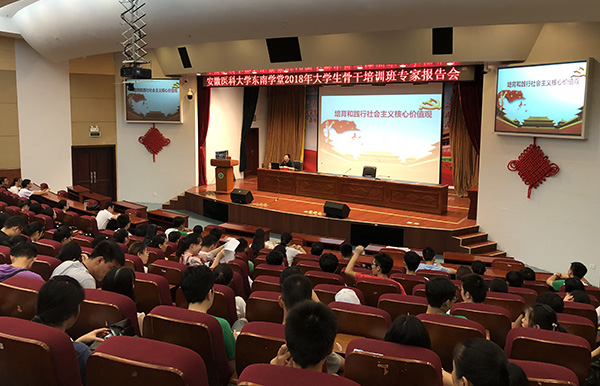 今年的培训班从8月23日开始,23日至24日两天在校本部开展活动,25日至27日赴巢湖校区(附属巢湖医院)实践教学。来自各学院的200名学员分成6班,1班和2班的60名同学同时也是“习近平新时代中国特色社会主义思想”研修班的成员,由校团委工作人员和学院的团组织负责同志担任各班的组织员,全程负责。