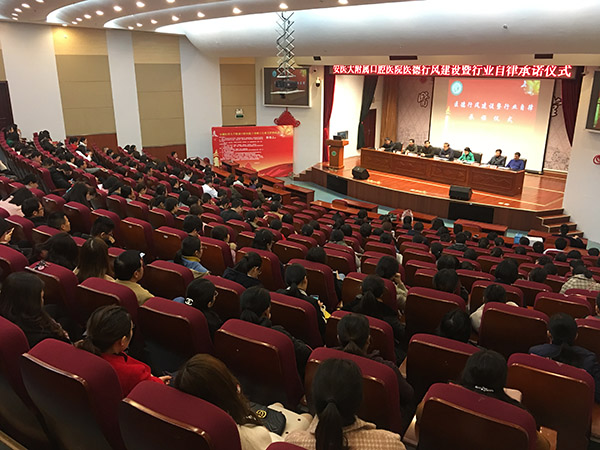 该院党委书记王润玲阐述了举行承诺活动的目的和初衷。院长何家才主持会议。副院长王海林代表全体医护员工宣读了承诺书。附属口腔医院全体医护员工270余人参加了承诺仪式。