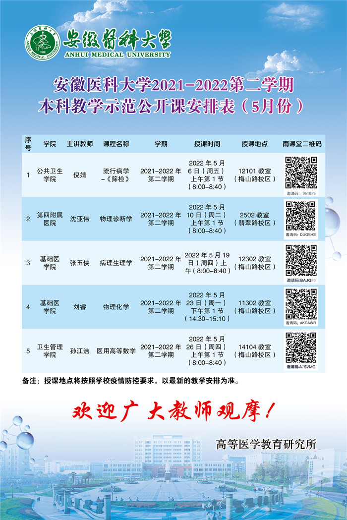 2021-2022第二学期本科教学示范公开课安排表(5月份)