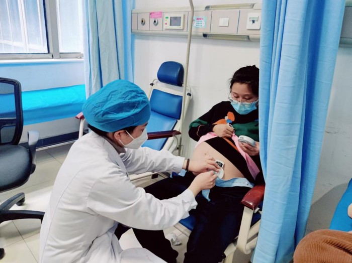 在产科病房的检查室内,副主任医师付娟娟正在为两名即将临产的孕妇进行胎心监护。这两名产妇都是因为感到宫缩剧烈,临时从家中感到医院。“产科病房承担产科急诊的功能,有孕妇要生了,或感到有异常,情况紧急的都是直接松到产科病房,不需要走挂号程序。”付娟娟介绍,21日上午,就来了七八名这样的产妇,由于她们的产期将近,遇到这样的患者,她们会暂停手中繁忙的工作,应诊尽诊,需要进行紧急剖宫产手术或住院保胎的,也会由科室班医生通过“绿色通道”快速救治。