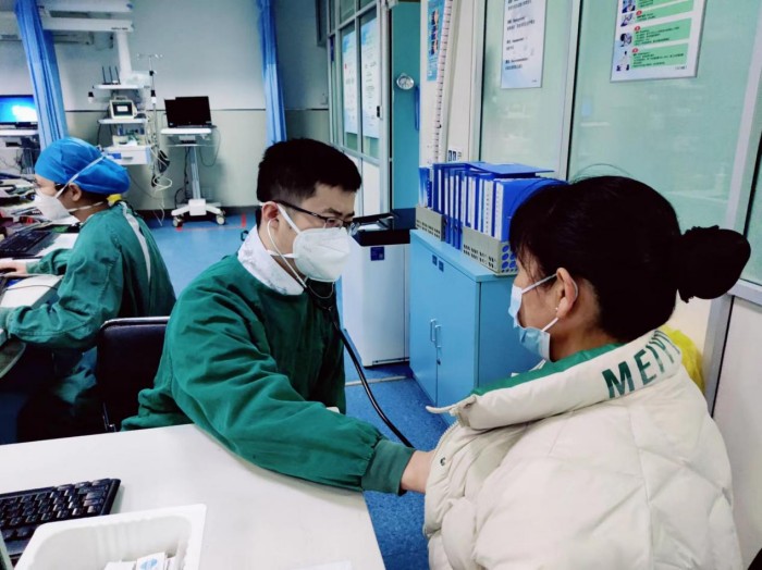 21日(年三十)早上八点,安医大二附院急诊内科主治医师陈才和前一天夜班的同事完成交接班,开始了一天的工作。“一个月前就阳过了,现在仍然总是感觉胸闷心慌……“血压时高时低,这两天头痛加重……”半天的时间,陈才就看了三十多名患者。而整个急诊小区(含外科、内科、儿科急诊)21日上午半天的接诊量超过100。陈才介绍,春节假期第一天,有各种就医需求的患者都来到了急诊。“急诊内科病种比较多,头晕头疼的、胸闷胸痛的,还有糖尿病人没有胰岛素,需要紧急开药等。”