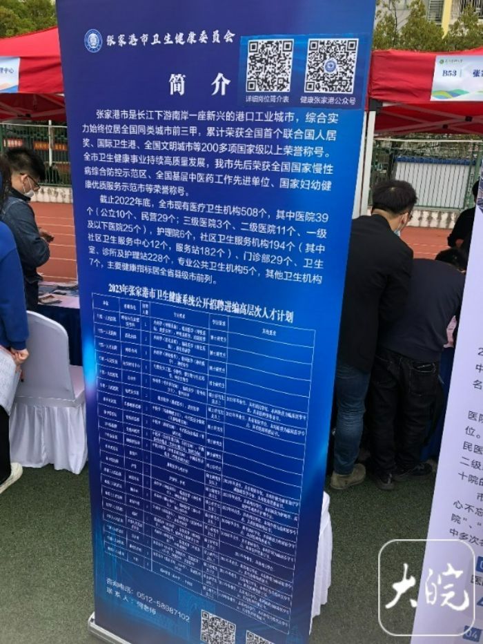 而省外的医疗机构也带来优厚的条件现场“揽才”。张家港市卫健委组织人事科负责人何丽娜介绍,这次她们带来了两百多个医疗岗位,覆盖了各个类别医学生,从博士到大专均有需求。“针对儿科,麻醉,影像,病理等紧缺专业,本科生就能开出直接入编、给住房补贴等条件。”她在现场积极推介,欢迎有意向扎根苏州张家港的安徽学子报考。