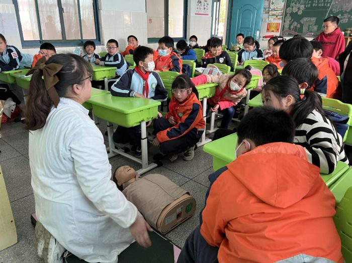 全国样板党支部、该校第二临床医学院学生党总支第一党支部学生党员走进小学开展急救培训。方骁枫摄