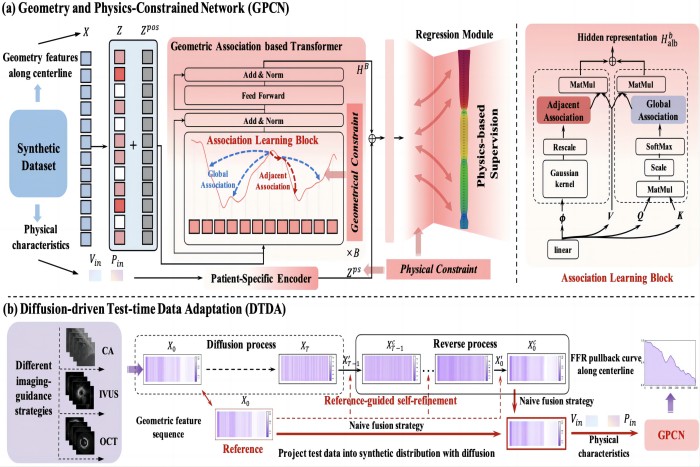 该项研究提出用约束感知学习框架改进从侵入性冠状动脉影像中估计血流储备分数的方法,将几何与物理领域知识相结合,用以约束冠状动脉中心线上的几何结构和血流储备分数值之间的关系,同时利用合成数据来降低临床数据的收集成本。研究有望在冠脉介入术中提供决策指导,提高临床流程效率,一定程度上减少临床医疗费用。