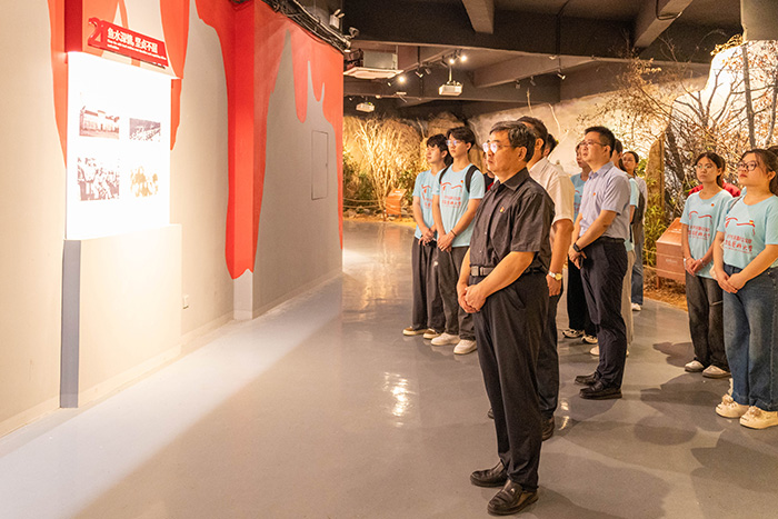 在皖南事变烈士陵园,谢瑞瑾与团队师生一同瞻仰了烈士纪念碑,参观主题广场、无名烈士墓、名人题字碑廊和皖南事变史料陈列室,深切缅怀老一辈无产阶级革命家和革命先烈的丰功伟绩。他希望同学们铭记历史,从红色精神中汲取奋进力量,强化责任担当,为中华民族伟大复兴贡献青春力量。