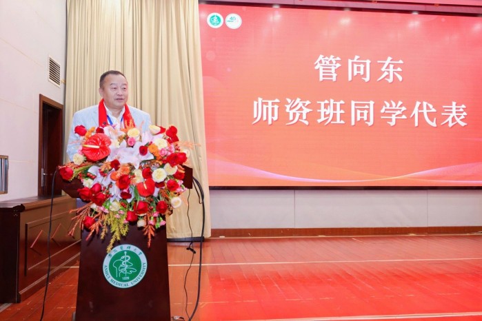 杜继双作为教师代表发言,深情回忆了与校友们相处相知的美好时光。他还向学校赠送了本人作词并创作的一幅精美书法作品,表达1984届校友对母校的深厚情感和美好祝愿,也希望校友们永葆母校情怀,秉承安医精神,不断创造新辉煌。