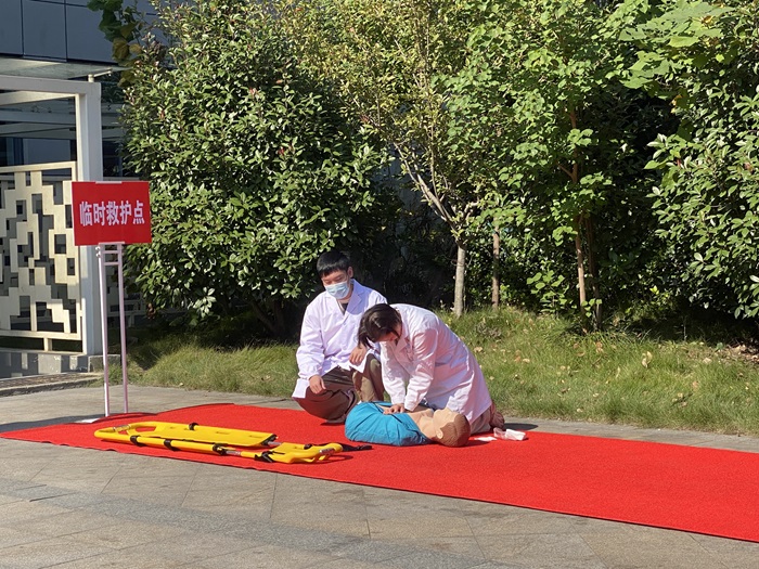 当天中午12时40分,接到演练总指挥指示后,现场指挥员按程序发出演练指令,尚学东楼、北楼和南楼门前立刻烟雾滚滚,消防警报声马上响起。宿舍楼中的学生在疏散引导员的带领下,用湿毛巾捂住口鼻,低姿行走,迅速从各楼层有序撤离。几分钟内,约2800名学生迅速疏散至指定安全区域。演练期间,新站高新区消防救援大队组织开展了人员搜救等演示活动,校医院医护人员对被救伤员进行了伤口包扎、心肺复苏等操作演示。