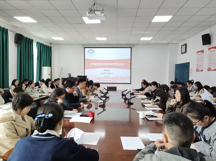 11月21日上午,护理学院召开师德师风建设专题会议,该院党委书记薛磊出席会议并讲话,副院长赵梅主持会议。