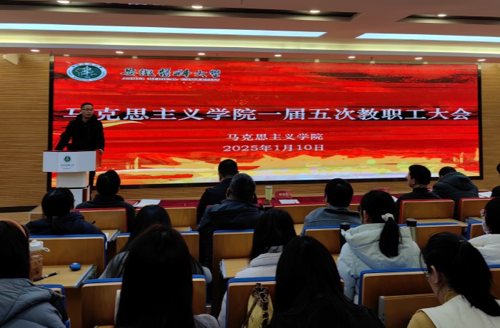 1月10日上午,马克思主义学院在力行楼召开一届五次教职工大会。院党委书记谢宜鹏主持会议,院长柳泽民作2024年度学院工作报告。