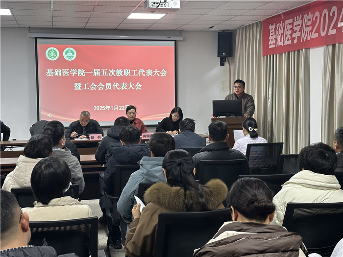 1月22日,基础医学院召开一届五次教职工代表大会暨工会会员代表大会,学术副校长、基础医学院院长张智出席会议。