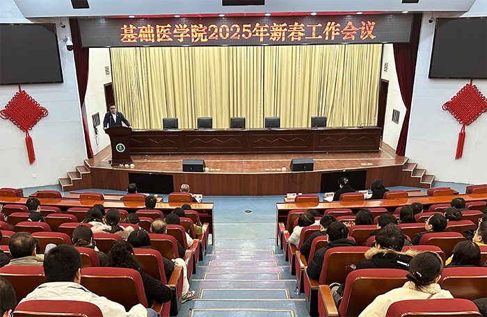 2月13日下午,基础医学院在图书馆第一报告厅召开2025年新春工作会议,传达学习学校“新春第一会”会议精神,明确学院2025年目标管理任务。学术副校长、基础医学院院长张智出席会议。