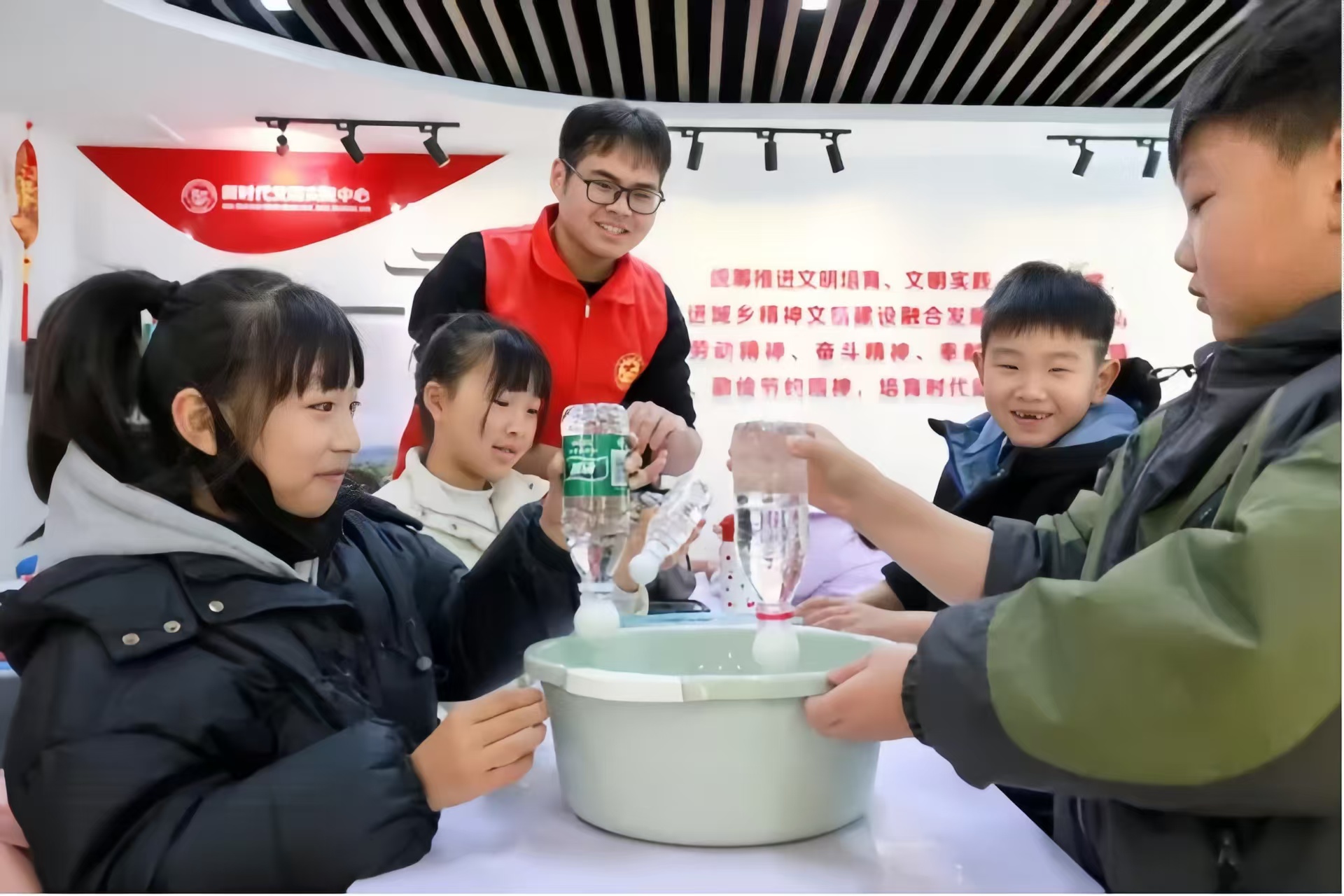 普及科普知识、开展爱国教育,护理学院2023级护理学徐升同学在这个寒假当了一回“小老师”。他在“益”起来肥西——五彩假期托管班中,用生动有趣的语言带领小朋友们探索世界奥妙,让他们寒假有“趣”处。在安庆市桐城市建设社区服务站,法学院2024级法学专业江姗姗则结合自己的专业所学,向路过的居民普及“开车不喝酒,喝酒不开车”等法治小常识,保障大家度过一个安全、祥和的春节。
