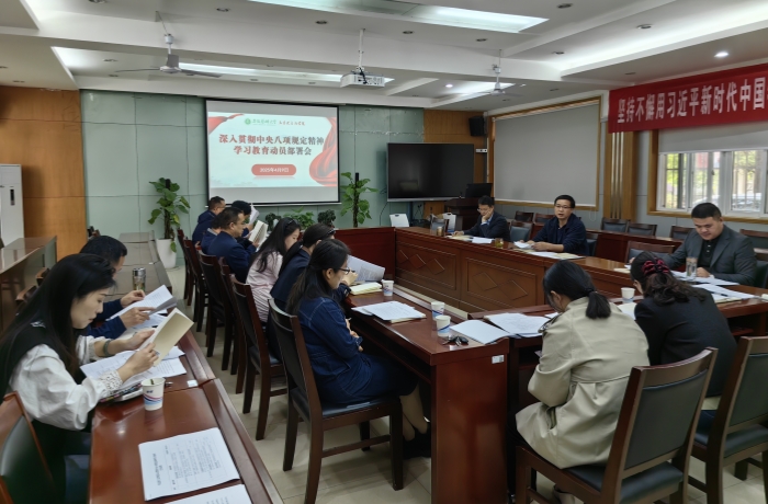会议传达学习了中共中央办公厅《关于在全党开展深入贯彻中央八项规定精神学习教育的通知》,认真学习了《习近平关于加强党的作风建设论述摘编》部分章节内容。会议还学习了学校深入贯彻中央八项规定精神学习教育动员部署会议精神及实施方案,并就学院学习教育作详细安排。