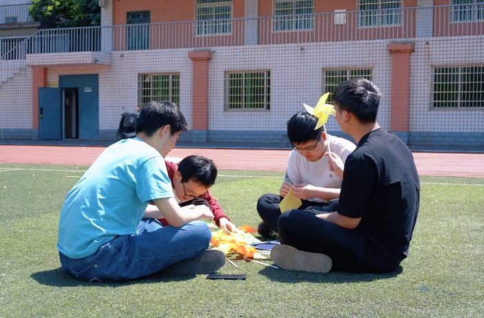 此次系列活动持续近1个月,形式丰富多样,亮点纷呈。“风传心语” 素质拓展活动中,同学们手写“愿你成为自己的太阳”“前路有光,初心莫忘” 等温暖话语系在风车上,并放置在校园各处。200余个五彩风车化身情感传递的使者,为路过的同学送上一份充满惊喜与关怀的特殊礼物。