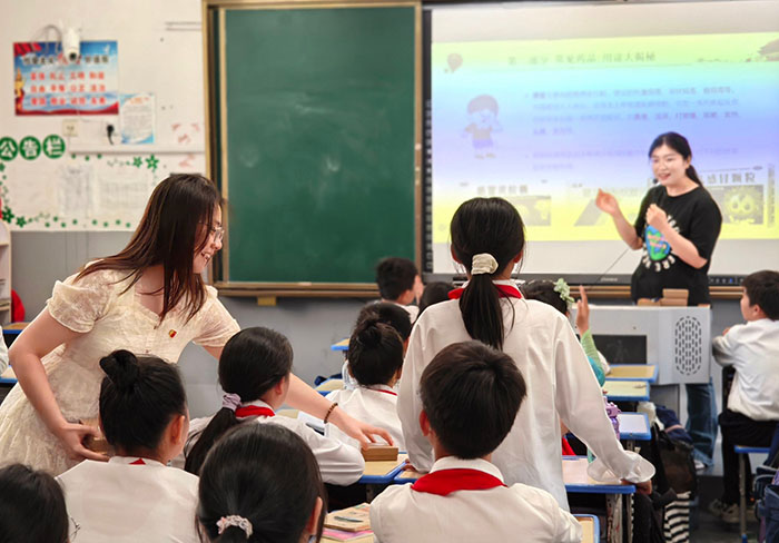 正值端午节与“六一”国际儿童节来临之际,学院师生党员走进祁门县实验学校,开展“党徽耀童心,药韵启童真”主题科普活动,通过专题知识讲座、互动问答、香囊手工制作等形式,将端午节传统习俗与中医药文化有机结合。研究生党员们为少先队员佩戴队章并领誓,以“大手拉小手”的形式传递红色基因。