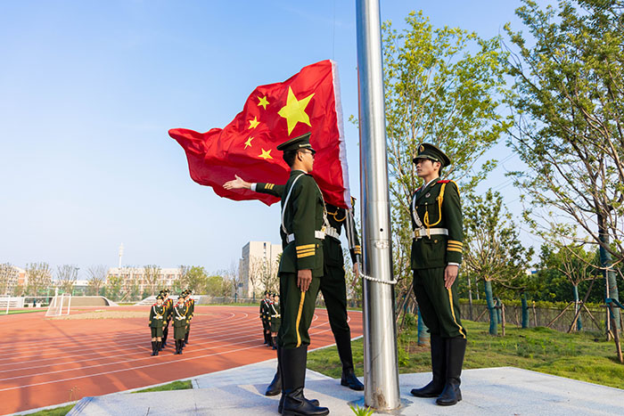 清晨的校园,微风轻拂,青春的热血在朝阳下激荡,仪仗队护卫着鲜艳的五星红旗正步走向升旗台。伴随着雄壮的《义勇军进行曲》,五星红旗冉冉升起,迎风飘扬。这一刻,爱党荣校的深情在每一位安医青年心头澎湃,矢志报国的信念更加坚定。