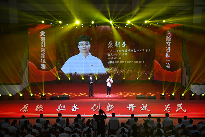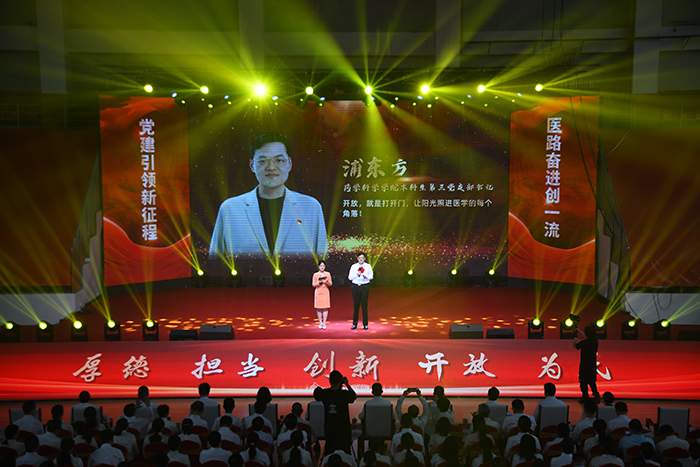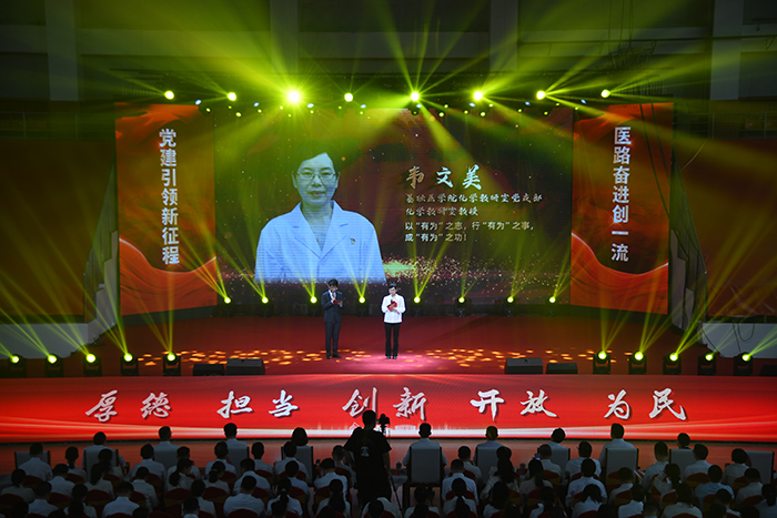 党员代表们还现场分享了 “五个安医” 的感人故事。离退休教职工党委龚德琼讲述的 “厚德安医”,体现了老一辈安医人坚守教育战线、传承红色血脉的高尚情怀;基础医学学院党委韦文美带来的 “有为安医”,展现了安医教师群体在教学科研中默默奉献的精神风貌;公共卫生学院党委秦新生阐述的 “创新安医”,彰显了安医科研人敢为人先的探索精神;药学科学学院党委浦东方讲述的 “开放安医”,展现了学校在国际合作与交流中的开放姿态;第一临床医学院党委付红分享的 “幸福安医”,体现了安医人以专业为盾、以仁爱为灯的温暖医者仁心。