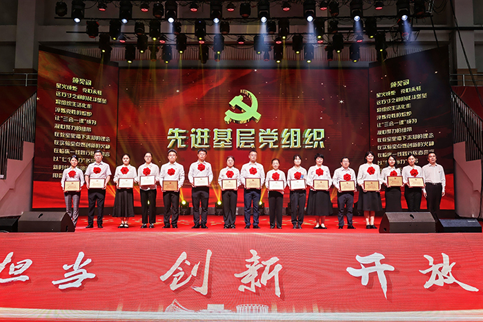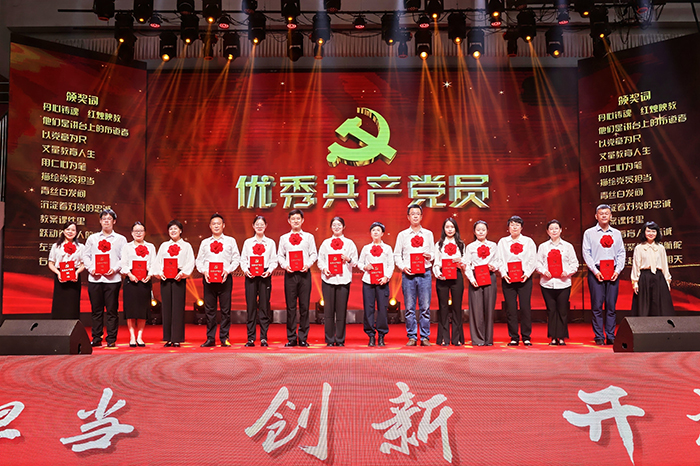 表彰环节,285 名 “两优一先” 先进典型、55 名 “党建三好” 模范标杆以及 “光荣在党 50 年”老党员接受表彰,一一上台领奖。