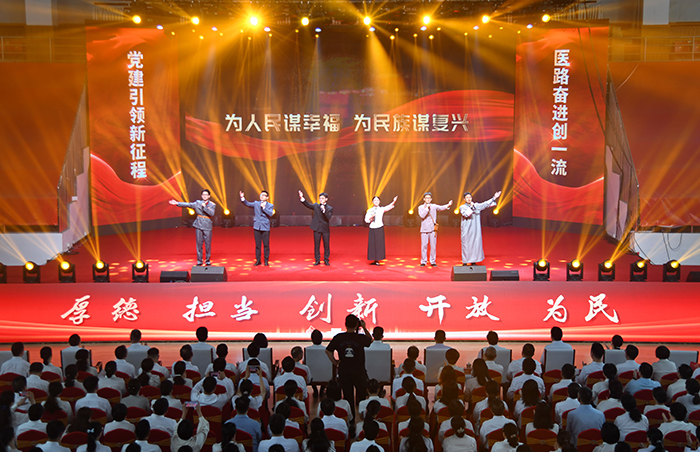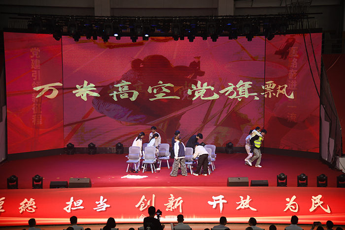 机关党委选送朗诵《红色家书》,字句间流淌着革命先辈的赤胆忠心,带大家开启一场穿越时空的初心对话。第一临床医学院(第一附属医院)党委与卫生管理学院党委选送舞台剧《万米高空党旗飘》,生动诠释了安医人在危急时刻挺身而出、守护生命的使命担当。