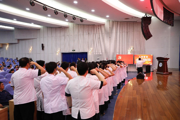 会上,新党员代表面向鲜红的党旗,庄重地举起右拳宣誓,彰显了对党忠诚、永不叛党的坚定立场,昭示了践行初心使命的责任担当。