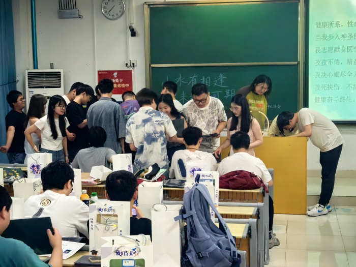 学院将对学生的发展支持融入全局,用仪式感激发使命感,打造“青春限定版”专属毕业礼物,把青春“小惊喜”转化为继续前行的强动力。定制安医主题文创,发放毕业纪念衫、辅导员寄语专属可乐罐、“医路同行”关怀礼包,刻印安医独家记忆。