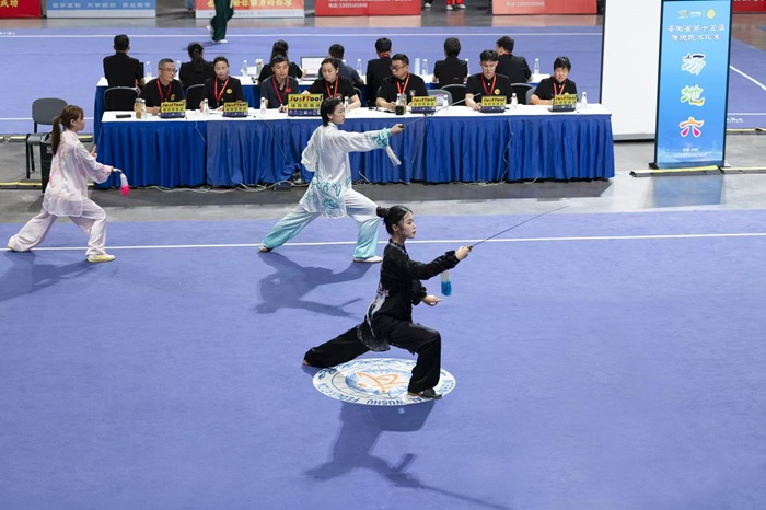 来自全省188个武术协会、武馆、社团及学校的3657名武者齐聚一堂,参赛人数再创历史新高。刘冬同学在首日进行的男子24式太极拳比赛中技高一筹,获得冠军,并在次日进行的男子其他传统太极拳比赛中再获亚军。女子其他传统太极拳比赛中,汪若晴同学演绎的一套孙式太极拳在起手落脚间蕴藏无尽深意,轻松夺冠;随后进行的女子42式太极剑比赛中,她又以一套起落有致、灵动飘逸的剑法赢得裁判的认可,获得个人第二冠。万程欢同学收获两项比赛的季军。此外,程宇、陈乐两名同学还分别获得了男子24式太极拳比赛的第5名和第7名。