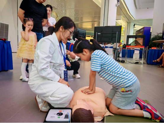 我校师生以专业的医学知识和高度的服务热情,为公众提供系统讲解和一对一实操指导,充分展现了在推进“有为安医”建设,弘扬科学精神、服务社会等方面的使命担当。团队的专业素养和奉献精神获得现场群众广泛赞誉,成为传播科学知识与人文关怀的重要力量。参与者普遍反馈,通过实战化学习有效掌握了急救技能要点,增强了应对突发事件的信心和能力。许多家长特别提到,活动不仅提升了家庭自救互救水平,也在孩子心中树立了尊重生命、勇于施救的价值观念。