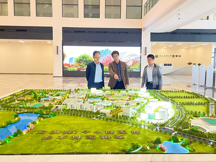 随后,调研组一行前往我校科创走廊考察调研。洪静芳围绕科创走廊的建设定位、功能分区等,对我校领军人才、学科成果转化、智慧医疗器械等内容作详细介绍。邱志海围绕新医科中心的建设规划、定位、功能模块与发展目标等方面情况作详细介绍。