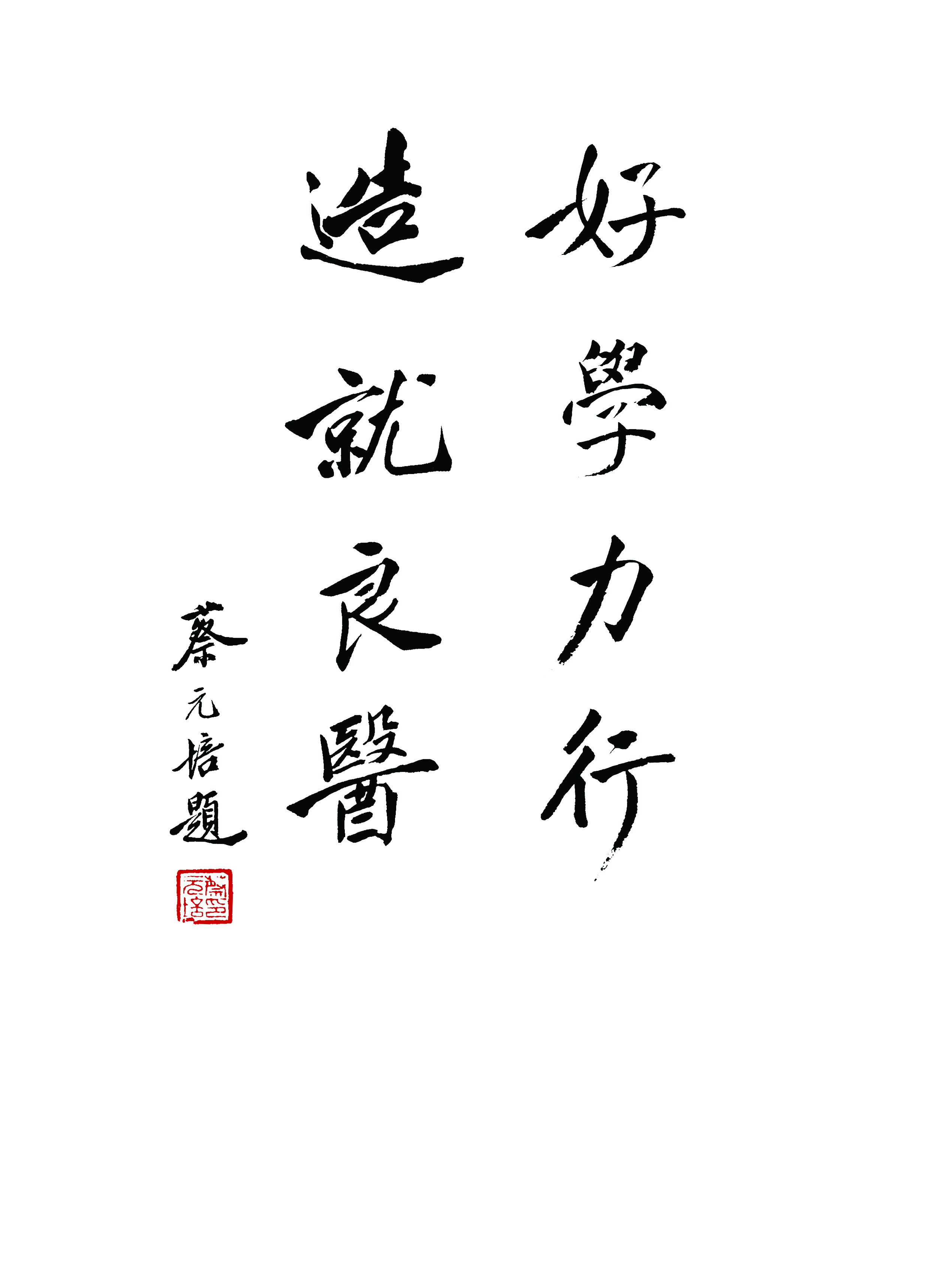 著名教育家蔡元培先生分别于1933年、1934年为我校前身东南医学院题词“好学力行”、“造就良医”。2006年,我校80周年校庆之际被确定为校训。